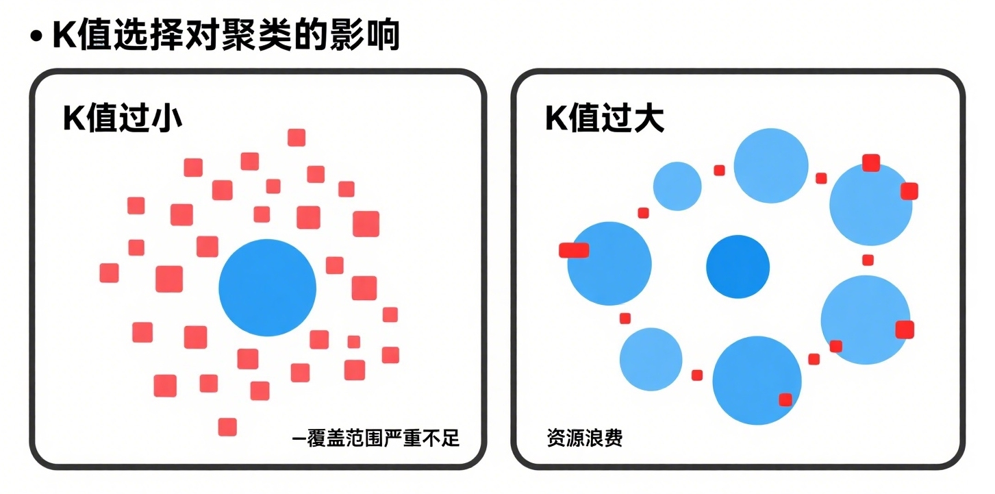 在传统的聚类方法中,无论是哪种算法,都面临着一个问题:需要预先设置参数,人工进行分类。以著名的K-Means算法为例,聚类数K值的选择对后续的运算存在至关重要的影响,我们举个例子来理解:K值过小,就如同一个大城市只有很少的配送中心,很多快递不能及时送达;K值过大,则像一个小城市里有许多配送中心,不仅造成资源浪费,还可能对噪声过于敏感,造成误判。参数选择上的主观性与复杂性,使传统聚类算法在应对复杂数据与多样化的应用场景时“有心无力”,无法发挥出最佳效果。
